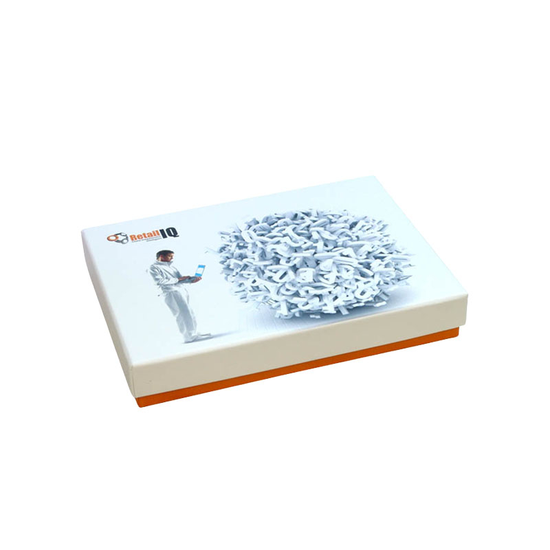 Cutie corporate din carton rigid, cu închidere telescopică. Cutia este tipărită policromie și plastifiată mat, pentru un aspect profesional, durabil și o bună protecție a suprafeței tipărite.