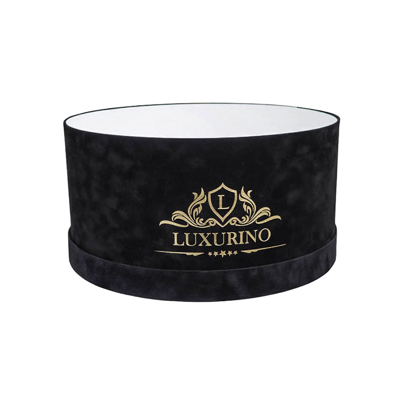 Cutie rotunda din carton rigid, imbracata in catifea premium, destinata aranjamentelor florale elegante. Constructia rigida asigura stabilitate si rezistenta, iar finisajul din catifea ofera un aspect luxos, tactil, potrivit pentru branduri florale premium.