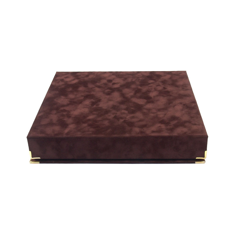Cutia este finisată cu colțare metalice, care oferă protecție suplimentară muchiilor și completează designul premium. Datorită construcției rigide și materialelor atent alese, cutia își păstrează forma și aspectul impecabil în timp.