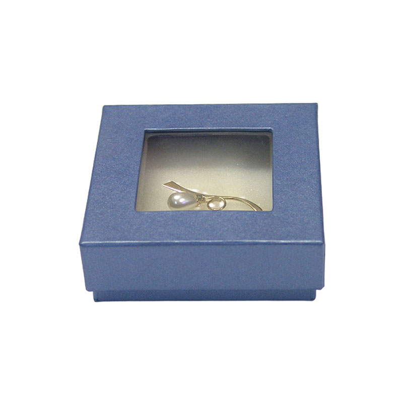 Cutie pentru bijuterii cu fereastra de vizualizare, realizata din carton rigid si imbracata la exterior cu hartie speciala colorata in masa. Fereastra transparenta permite vizualizarea directa a bijuteriei, fara a deschide cutia, oferind un impact vizual puternic si o prezentare eleganta.
