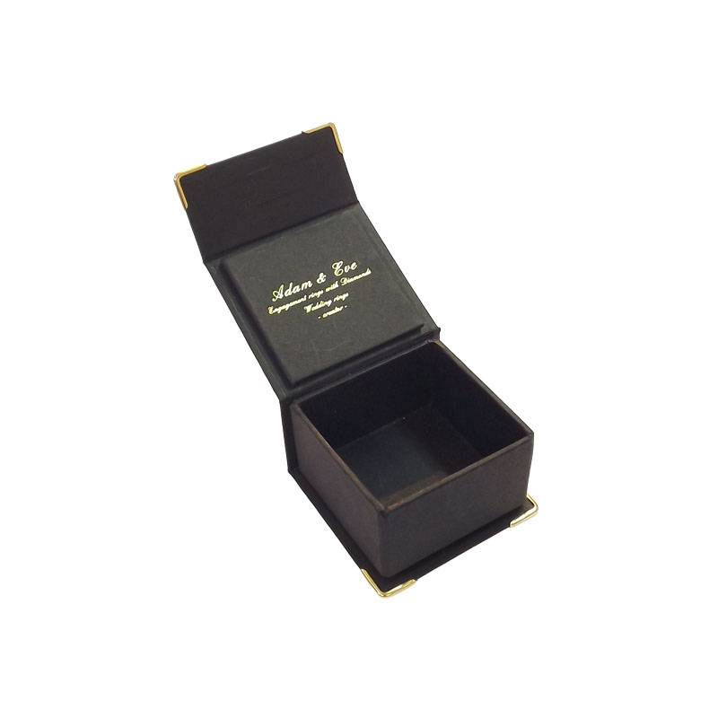 Cutie pentru inele realizata din carton rigid, cu inchidere magnetica, gandita pentru prezentarea eleganta a bijuteriilor de mici dimensiuni. Constructia solida este completata de coltare metalice decorative, care adauga rezistenta si un aspect premium, fara artificii inutile.