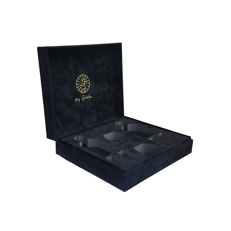 Cutie de prezentare premium, realizată din carton rigid îmbrăcat integral în catifea, destinată ambalării și prezentării parfumurilor și produselor cosmetice. Finisajul din catifea oferă un aspect elegant, tactil, asociat segmentului luxury și colecțiilor speciale.