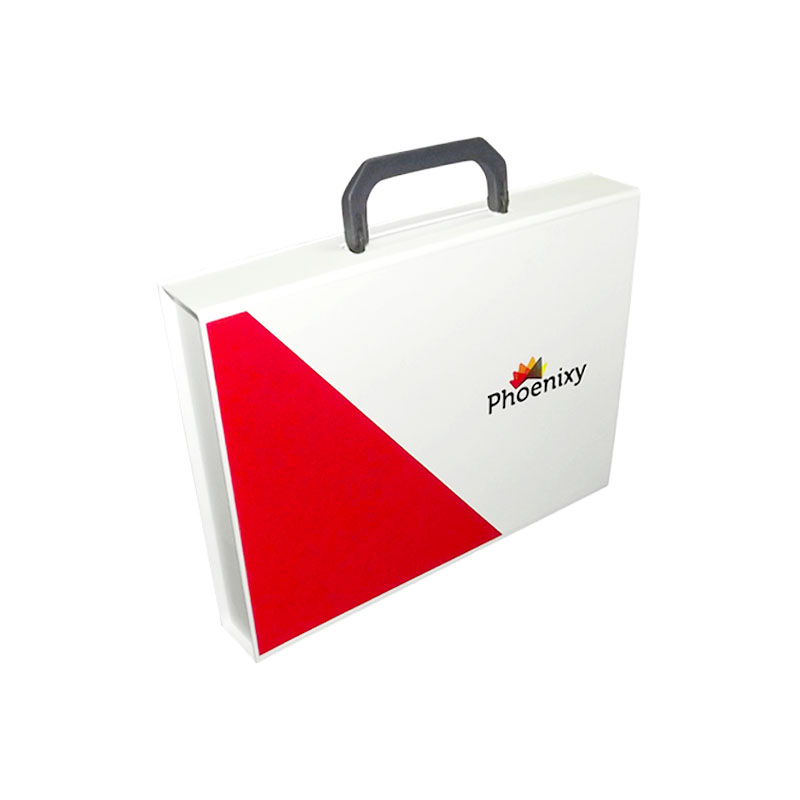 Manerul integrat permite transportul usor, iar structura rigida protejeaza continutul impotriva indoirii sau deteriorarii. Cutia este ideala pentru prezentari formale, intalniri de afaceri, evenimente corporate sau kituri de informare.