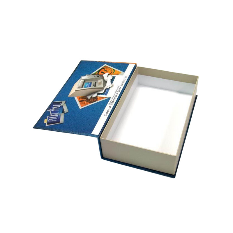 Cutie tip carte din carton rigid, conceputa pentru prezentarea si protejarea documentelor, materialelor promotionale sau kiturilor corporate. Deschiderea laterala ofera acces facil la continut, iar structura solida asigura stabilitate si un aspect profesional.