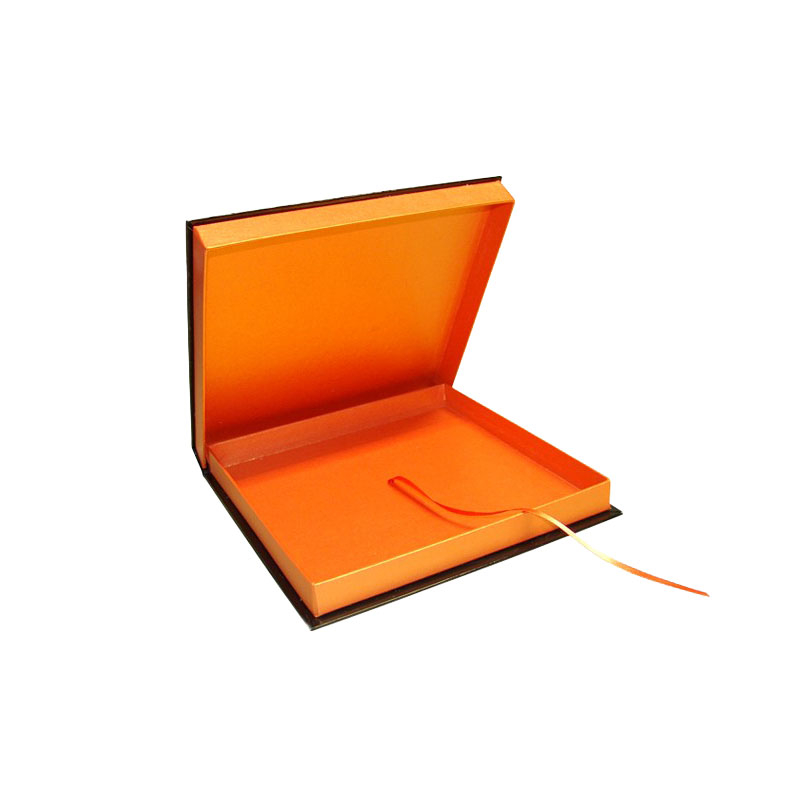 Cutie tip carte din carton rigid, cu interior elegant si panglica extragerea continutului. Ideala pentru carti, albume, agende sau documente premium, oferind protectie si o prezentare rafinata.